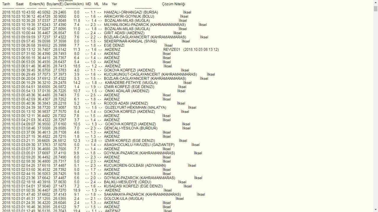 Kandilli Rasathanesi ve Deprem Araştırma Enstitüsü’nün (KRDAE) bilimsel verilerine göre gün içerisinde ülkemizde yüzlerce deprem oluyor. Buna mukabil çoğunluk ilksel sarsıntı olurken artçı şok ve şiddetli depremler de meydana gelebiliyor.
