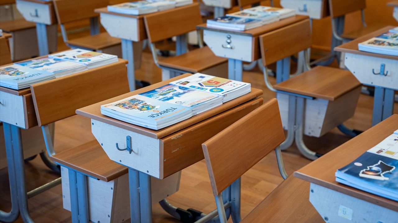 Ankara'nın Çankaya ilçesindeki Erdoğan Şahinoğlu Ortaokulu'nda görev yapan öğretmen ve görevliler, ders kitaplarını tek tek ayırarak sıraların üzerine yerleştirdi.