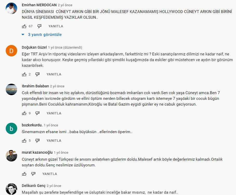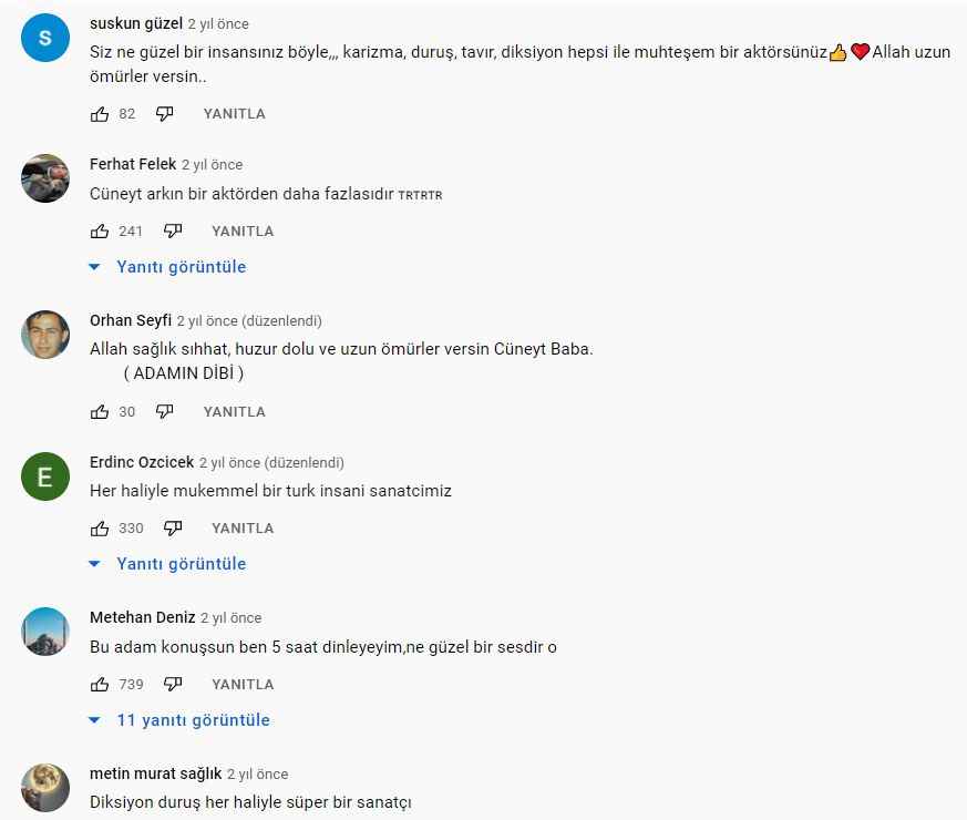 YORMUCULAR CÜNEYT ARKIN'I BEĞENİ YAĞMURUNA TUTTU
