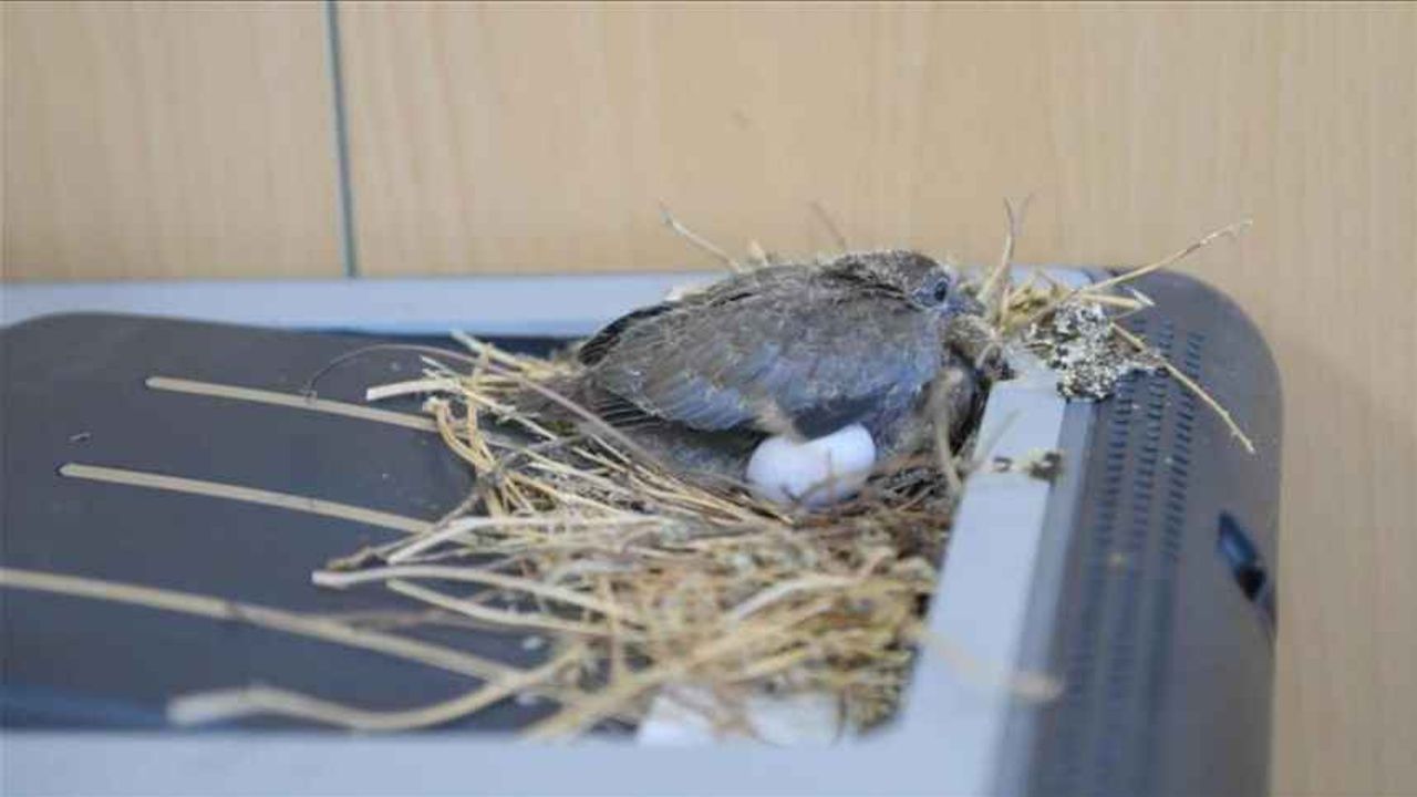 Makam odasına yuva yapan kumruların yavrusu olduTürkiye