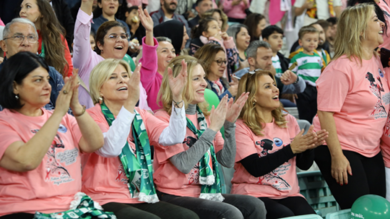 Bursa Büyükşehir Belediyesi'nin 1-31 Ekim Meme Kanseri Farkındalık ayı kapsamında, farkındalık oluşturmak amacıyla düzenlediği etkinliklerin bir yenisine Bursa Büyükşehir Belediye Başkanı Mustafa Bozbey'in eşi Seden Bozbey de katıldı. Bursa Büyükşehir Belediyesi'nin organizasyonuyla yaklaşık 100 kadın pembe tişörtleriyle Bursaspor Menemen Belediyespor maçını izleyerek farkındalık oluşturdu. Kadınlarla birlikte Bursaspor maçını tribünden izleyen Seden Bozbey, pembe kurdele takarak farkındalık mesajı verdi. Seden Bozbey, "Bursaspor Yeşilin İncileri Derneği ve Bursa Kanser Derneği işbirliği ile maçı kadınlarımızla birlikte izledik. Hem Bursaspor'u desteklemek hem de bu ayın farkındalığını artırmak amacıyla tribündeyiz" dedi.