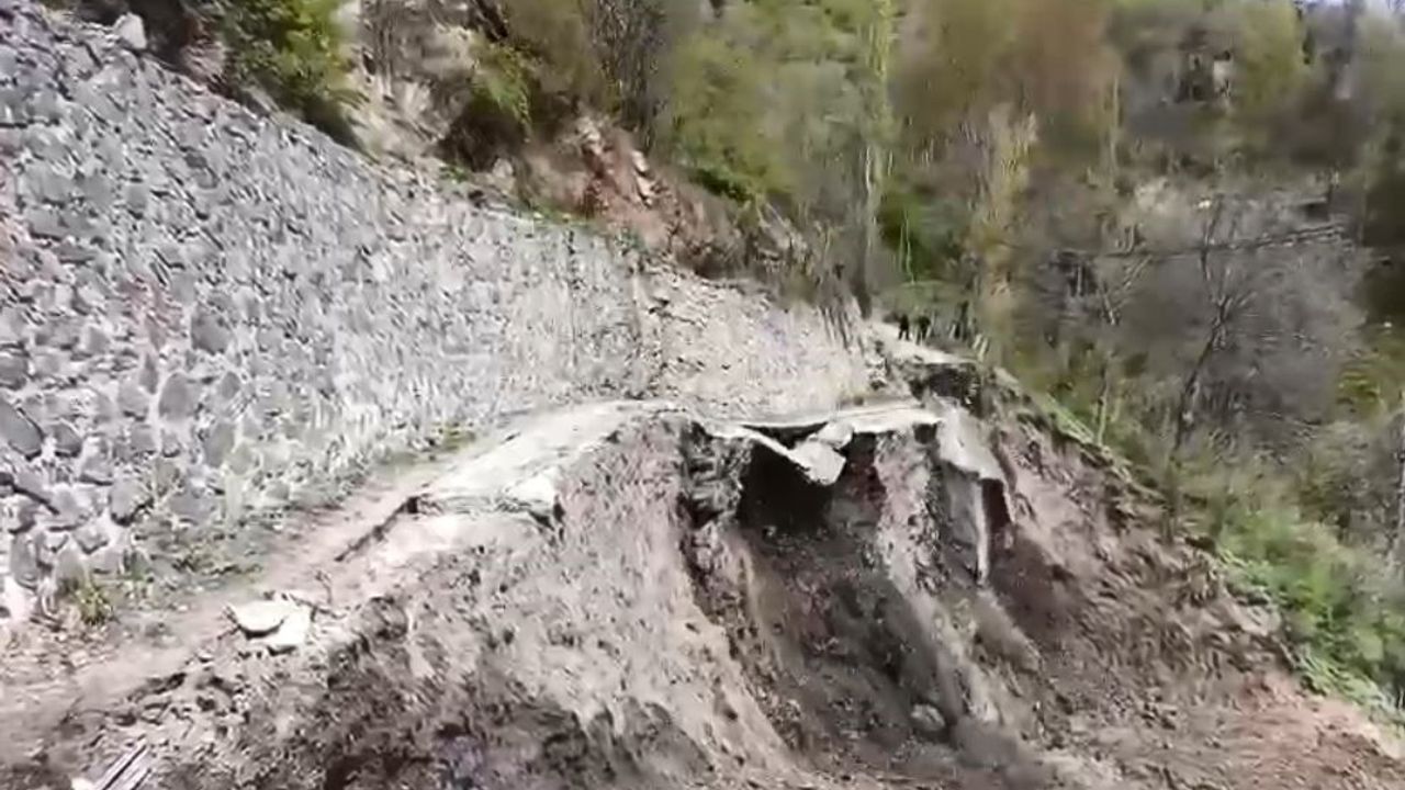 Olay ilçeye bağlı Yüncüler köyünde meydana geldi. Geçtiğimiz günlerde aynı bölgede meydana gelen heyelan nedeniyle mahalleler arası yol çökmüş, İl Özel İdaresi ekipleri bölgede yolun yeniden ulaşıma açılması için çalışma başlatmıştı. Ekipler tarafından taş duvar yapımı için temel kazısı yapıldığı sırada, sağlam olduğu düşünülen yol ve üzerindeki duvar, büyük bir gürültüyle birlikte çöktü.