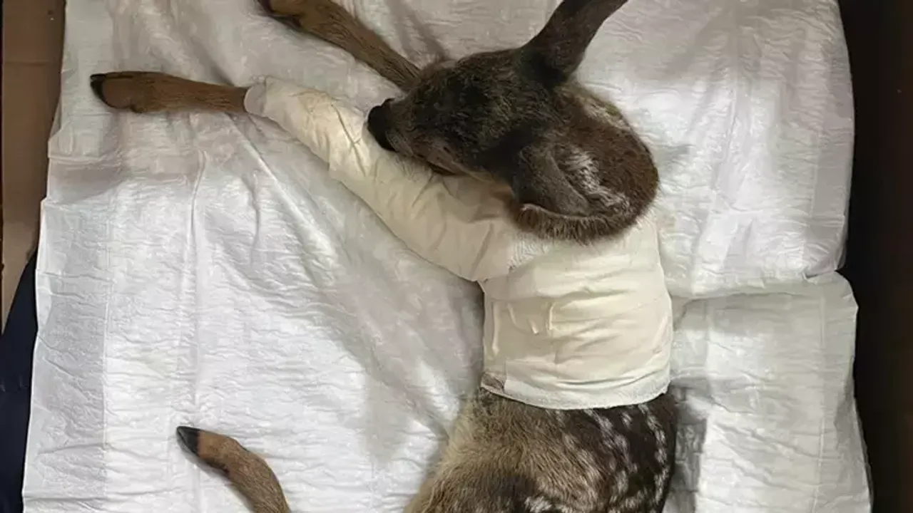 Veteriner hekim tarafından yapılan muayenede, karacanın ön bacağında kırık ve vücudunda çarpmaya bağlı çeşitli yaralanmalar tespit edildi.