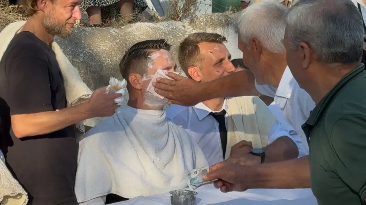 Balıkesir'in Gönen ilçesine bağlı Havutça Kırsal Mahallesi’nde asırlardır süregelen sıra dışı bir düğün geleneği dikkat çekiyor. Bölgede uygulanan "Damat tıraşı" adlı gelenekte, damat ve sağdıçları bir masaya oturtuluyor. Tıraş esnasında ilk tokadı gelin, eline para alarak damada atıyor.