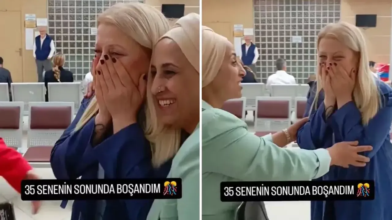 Boşanma kararını aldığı gün sevinç gözyaşları döken kadın, yaşadığı mutluluğunu "Yıllardır bu anı bekledim. 35 senenin sonunda boşandım" sözleriyle dile getirdi.